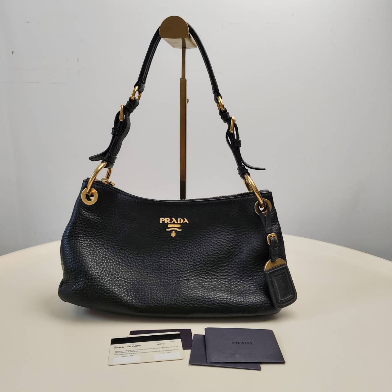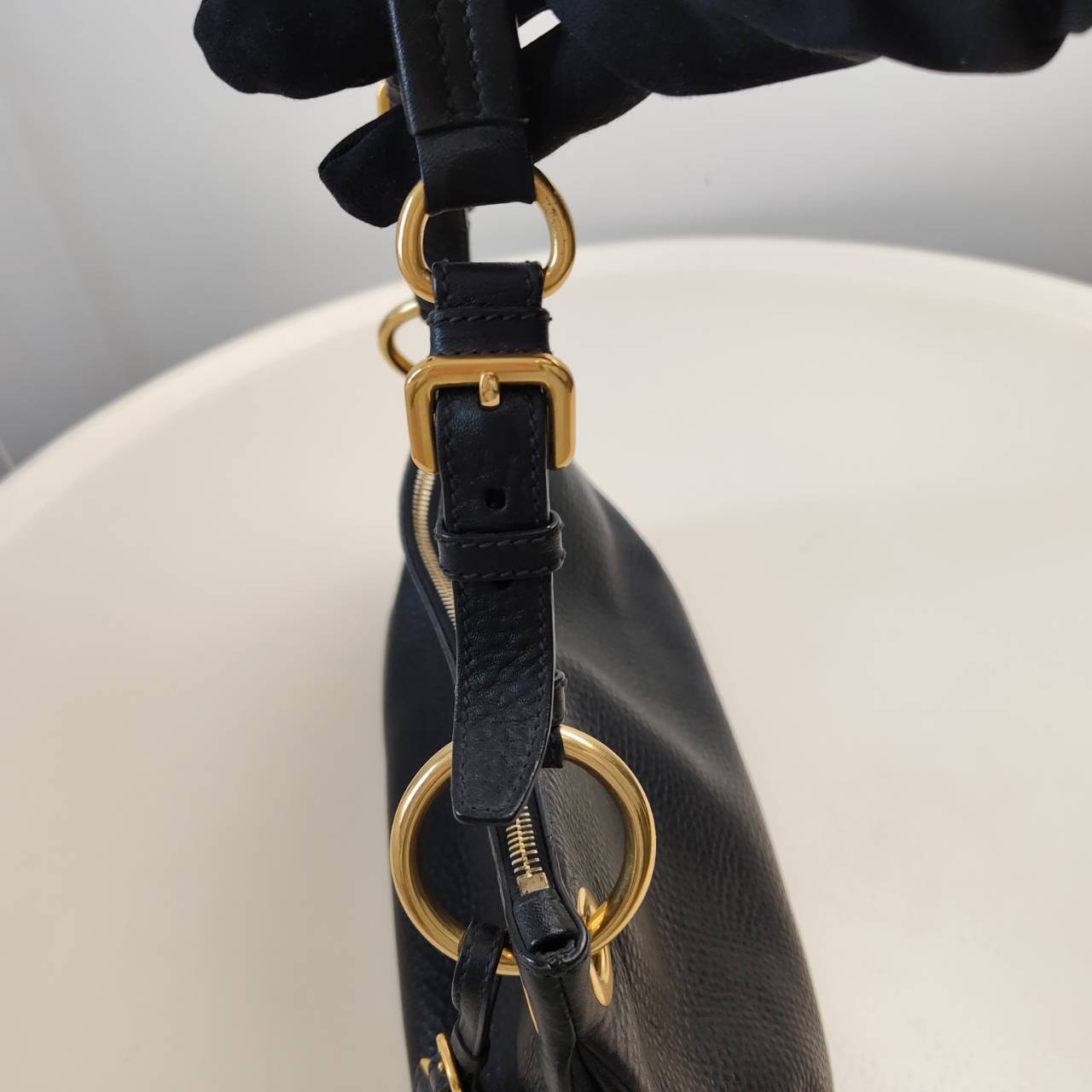 Prada, Vitello Daino Hobo Bag, , Black, Very Good